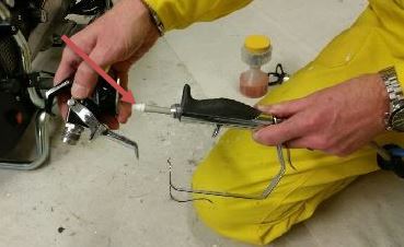 Zodra je hebt gekozen voor een van de Airless filters, is het belangrijk om deze ook juist in het pistool te plaatsen. Bij verkeerd-om plaatsen van een filter zul je wel retour kunnen spuiten en geeft de manometer druk aan, maar komt er geen materiaal uit het pistool. Zie hieronder hoe je dit op juiste wijze doet.